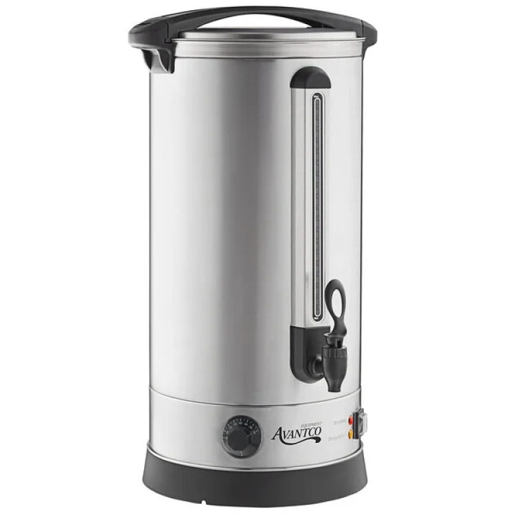 For easy hot beverage service, this Avantco water boiler has a stainless steel tank that heats and holds up to 29 liters or 7.6 gallons of hot water with a variable temperature control between 80 and 212 degrees Fahrenheit. It features a double-wall stainless steel body with a 2-way, non-drip spigot and can boil water in 93 minutes. Ideal for catering events, hotels, offices, churches, and schools, this Avantco water boiler is an ideal addition to a complete beverage service. Please note that a 120V connection is required for operation.