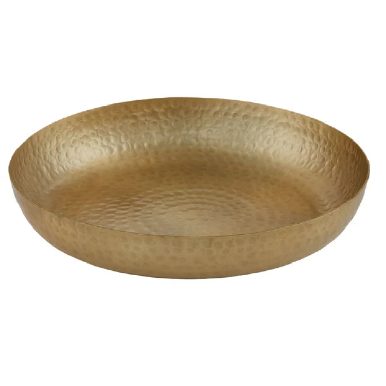 Elevate your seafood presentation with this American Metalcraft 12" round gold hammered aluminum seafood tray. Combining contemporary materials and old world styling, this seafood tray offers both an authentic artisan aesthetic and practical display functionality. Its durable aluminum construction features an individually hammered surface that gives it an edge over basic aluminum seafood trays. It will also help to maintain cold temperatures and reduce sweating when serving seafood on ice, keeping your shrimp, oysters, crab, clams, and other shareable seafood fresh throughout the duration of service.